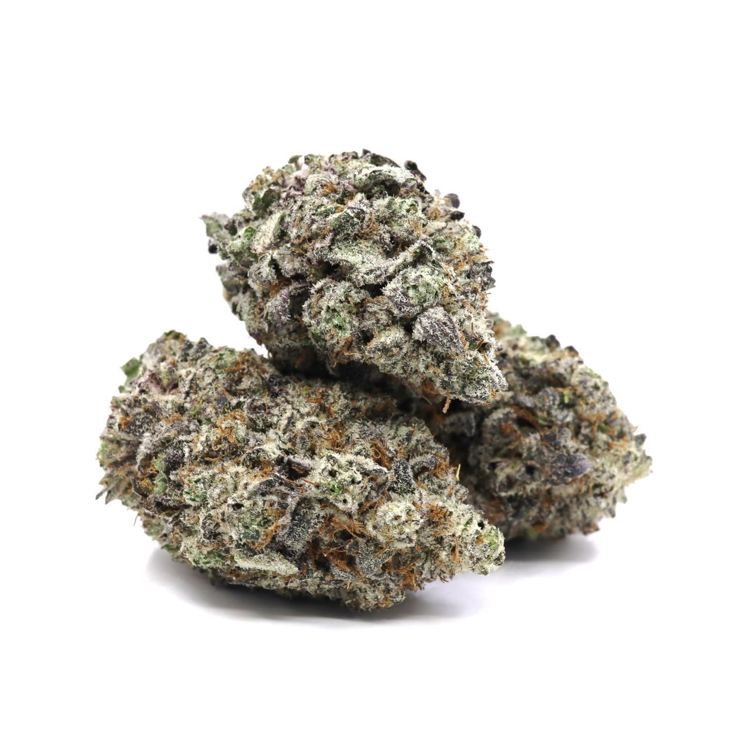 7 Ghosts is an indica dominant hybrid strain created through a powerful four-way cross of the infamous Tahoe OG X Master Kush X Pre-98 Bubba Kush X Alien Kush F1 strains. This celebrity child is a rare find, but definitely worth the price if you do manage to get your hands on it. The high is that of a strong stoney indica powered by a supposedly high THC level that has never been tested. It starts with a spacey head high that spreads throughout your body in warming waves, providing effective pain relief and a slight tinge of hunger. The effects are a little sedative in nature and can leave some users feeling sleepy as the body buzz builds. Because of these effects, 7 Ghosts is often recommended to treat chronic stress or anxiety, nausea, insomnia, or chronic pain. This bud has grape tomato shaped dark olive green nugs with a furry coating of dark orange hairs and a thick frosty layer of tiny white crystal trichomes and visible droplets of resin. 7 Ghosts has a classic Bubba Kush flavor that’s accented nicely by a slight skunky pungency upon exhale. The aroma is very pungent and can fill up a room as soon as you release it, so beware!