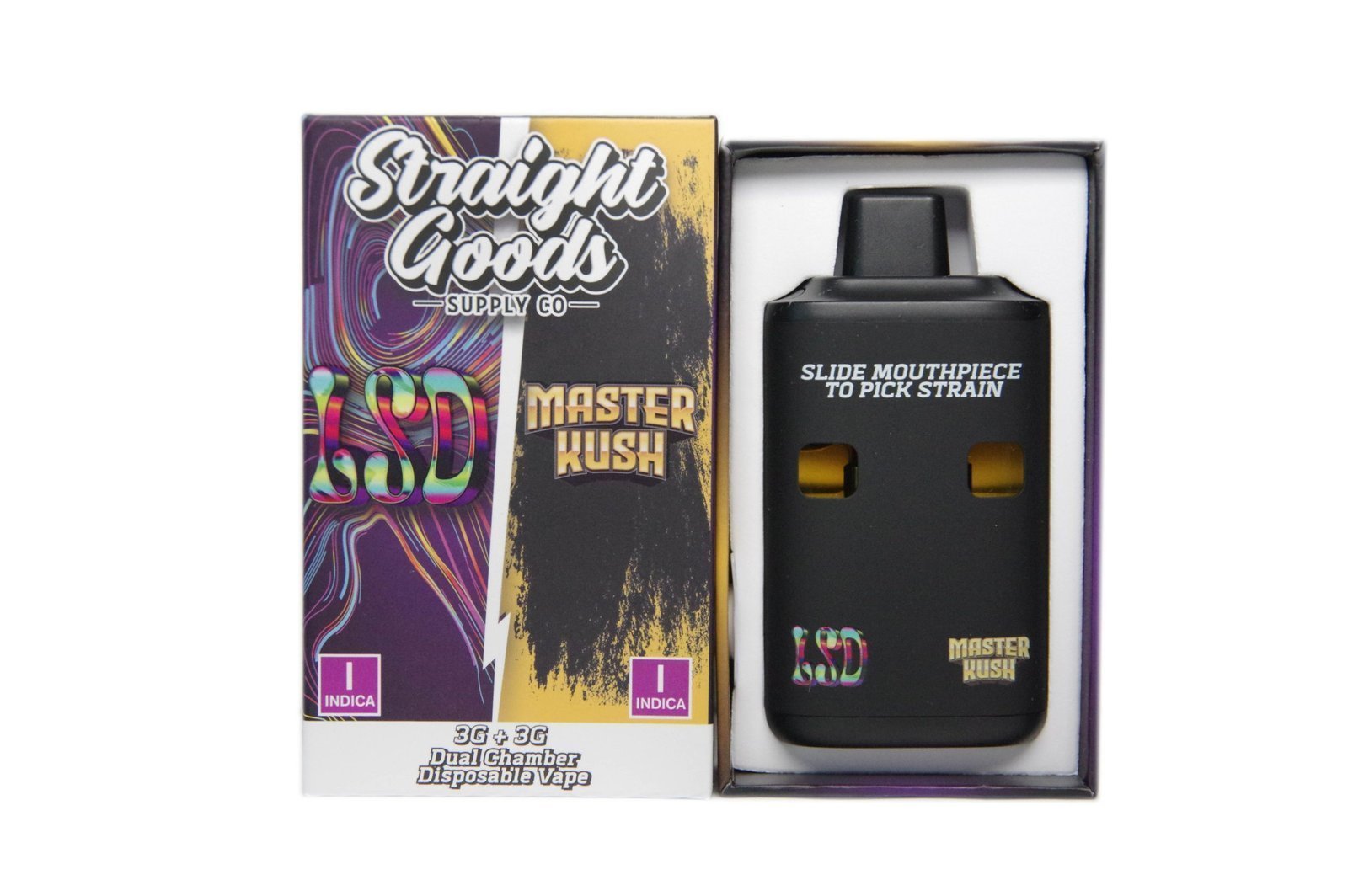 Straight Goods Supply Co. 6 Gram Dual Chamber Disposable Vapes – LSD + Master Kush THC Distillate